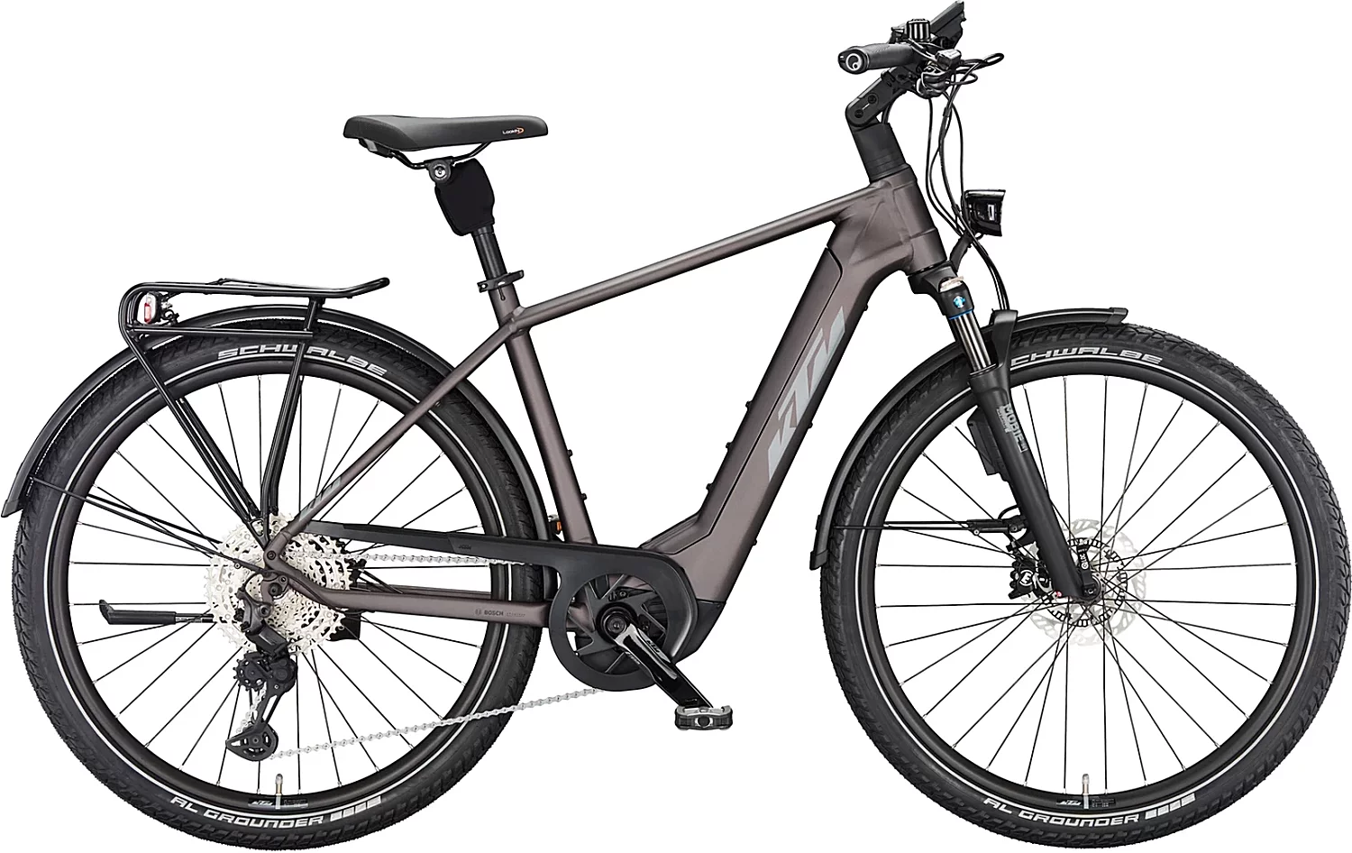 Размер колеса 29" Рама Alloy6061 Вилка Suntour Mobie34 Air 29" 2CR 80mm 15QLC taper Задний переключатель Shimano Deore XT M8130-11 LG shadow+ Тормоза Magura CT Disc ABS 4-Piston Покрышки Schwalbe Al Ground Perf. RaceGuard 60-622 Крылья SKS A69R 69mm black matt Багажник KTM light (snap-it 1.0) Фара передняя B&M Lumotec IQ-XL LED 300+250Lux Фара задняя B&M Typ 340 brex LED Аккумулятор PT750Wh Bosch Gen.4 / T-2940 Зарядное устройство Bosch STANDARD Charger 4A SMART SYSTEM Вес 28.5 kg